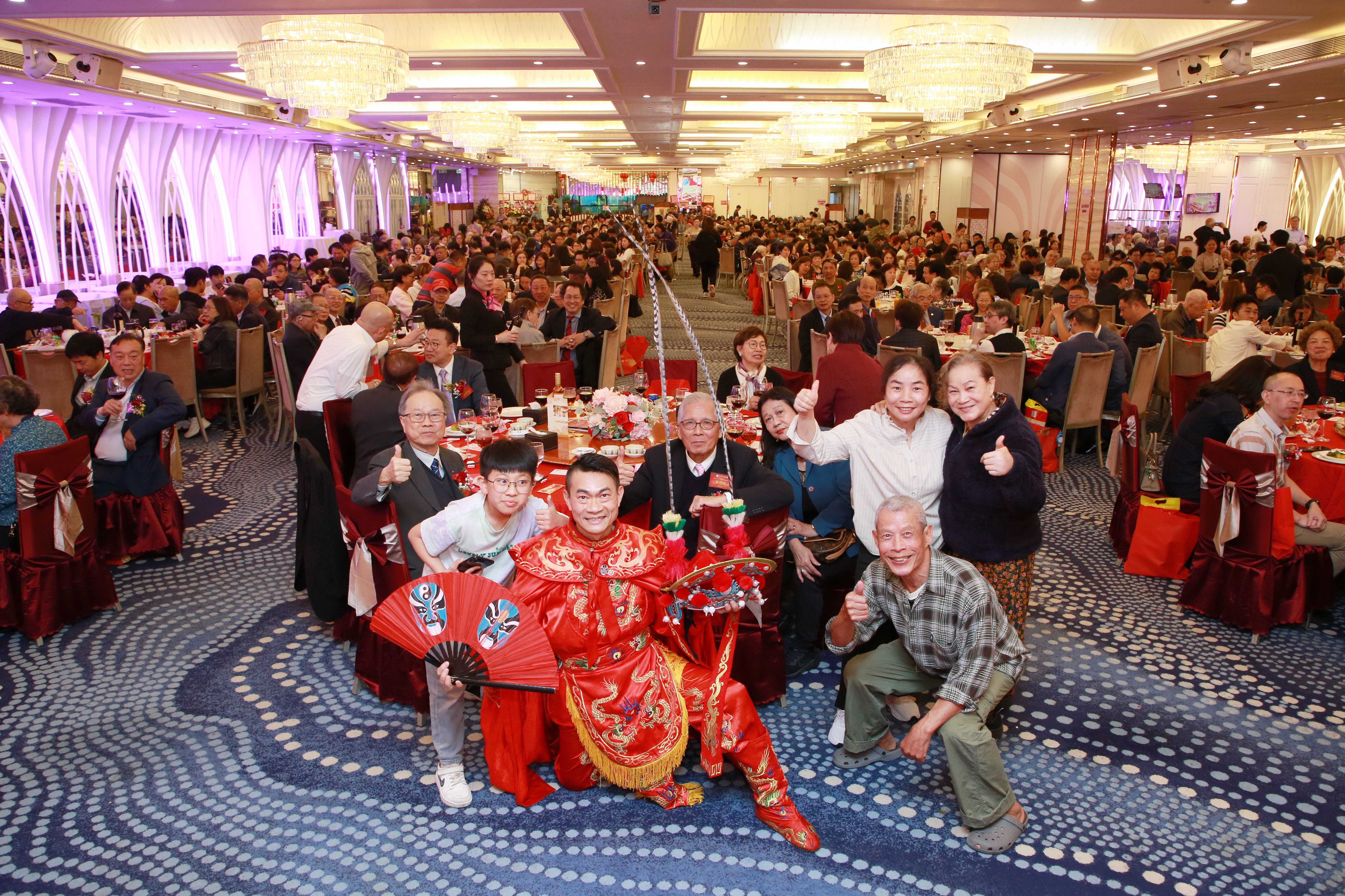 中聯辦港島工作部協調處副處長蔡曉珊女士、工聯會副理事長兼立法會議員陳穎欣小姐、五邑大學統戰部常務副部長莫樹培先生、鶴山市委常委兼統戰部部長陳文光先生、中銀香港慈善基金董事吳亮星先生等嘉賓,與九百多位香港鶴山籍鄉親歡聚一堂,共慶佳節。